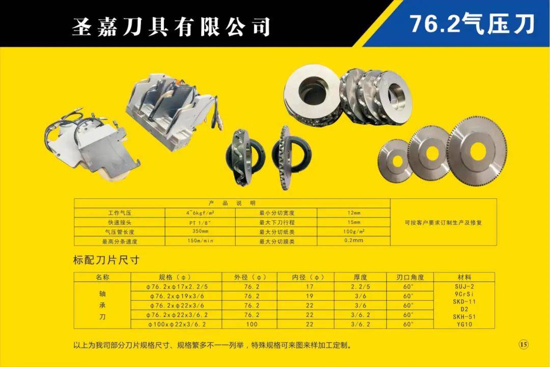 圣嘉刀具專業(yè)生產(chǎn)各種型號規(guī)格分切、分條、分紙、復(fù)卷機(jī)刀片、油墨刮刀,柔印/凹印機(jī)、紙袋機(jī)刀,誠邀海內(nèi)外客戶朋友前來參觀交流!